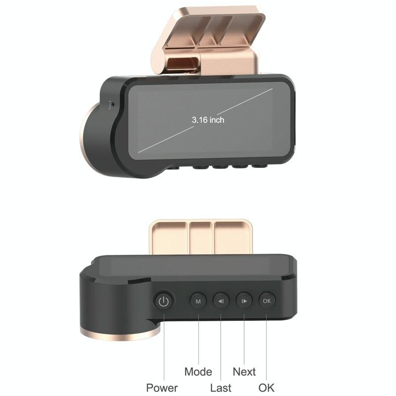 1080p Hd Night Vision Wifi Driving Recorder with In-car Camera - 3.16 Inch
