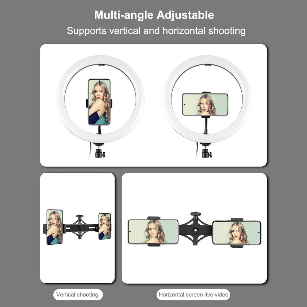 • 1 x 11.8 Inch 30Cm Light 1.1M Tripod Mount Dual Phone Brackets Curved Surface Type-C 3 Modes Dimmable Dual Colour Temperature Led Ring Vlogging Video Light Live Broadcast Kits With Phone Clamp Black