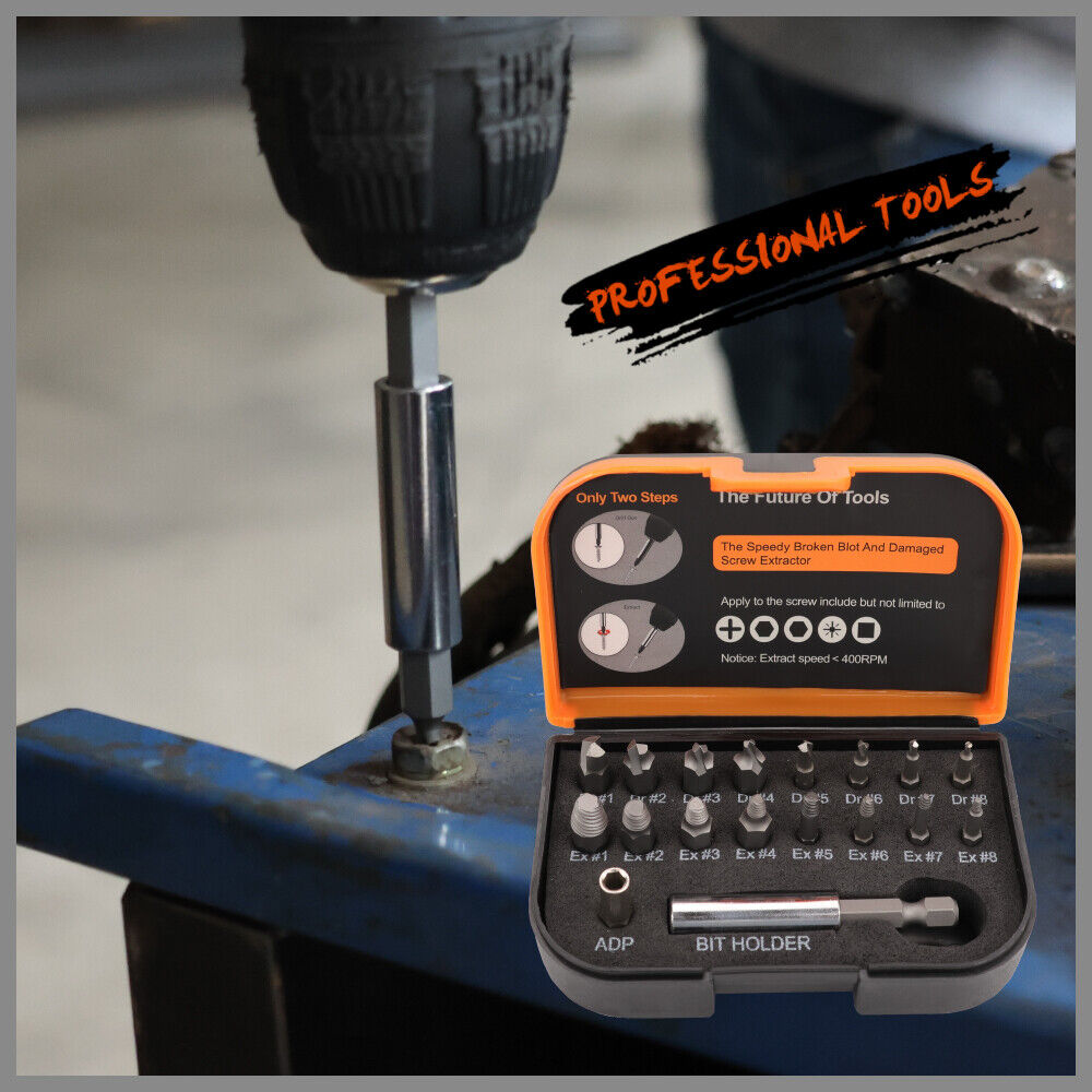 18x Magnetic Damaged Screw Extractor Set Broken Drill Bit Remover Kit Hex Crv