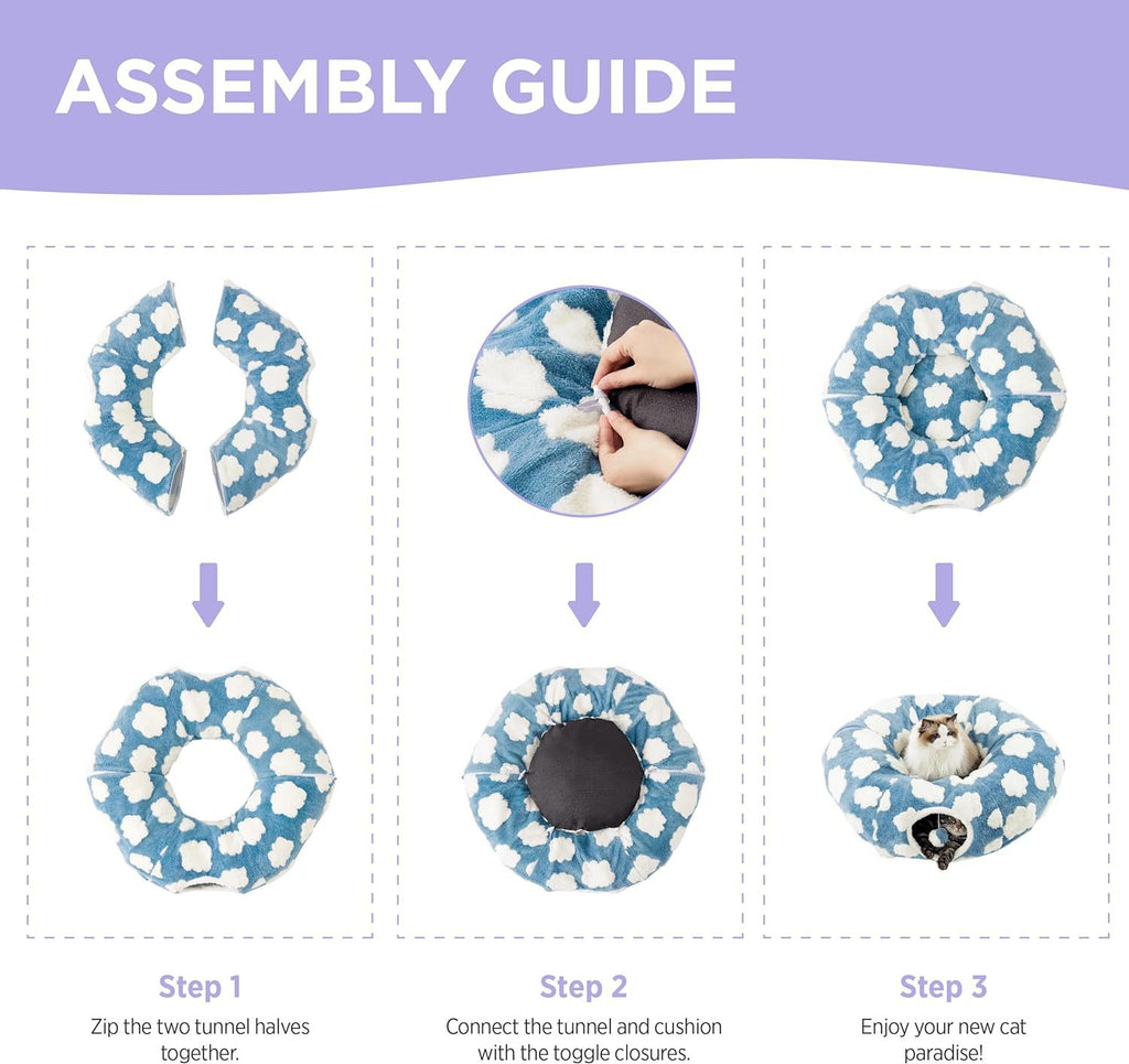 - Interactive Play Elements: Features a built-in hanging plush ball at the tunnel entrance to spark your cat's hunting instincts. The tunnel structure satisfies their natural desire to burrow and hide.