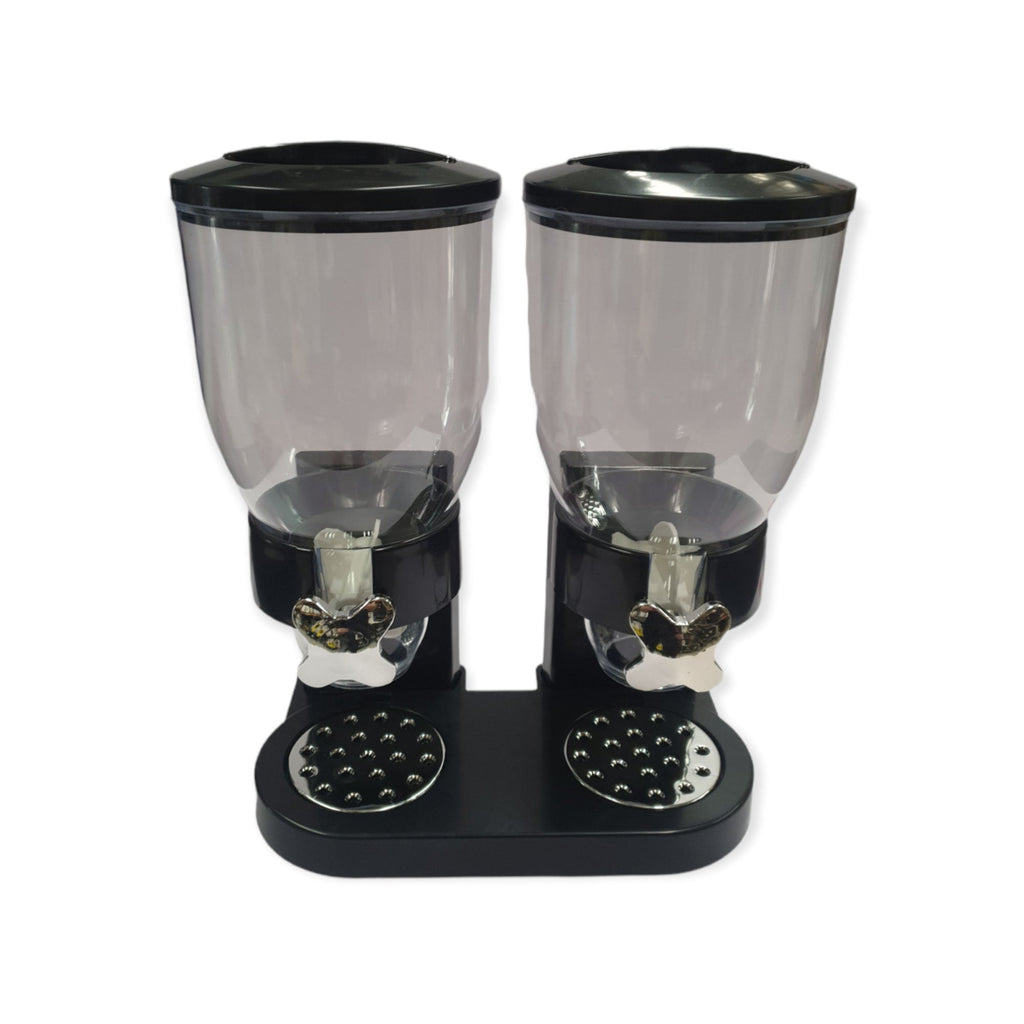2 x 4L Double Cereal Dispenser Black - Round Rice Grains Countertop Storage