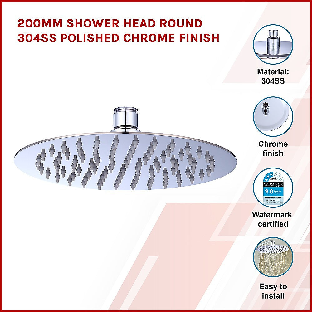 200mm Shower Head Round 304SS Polished Chrome Finish