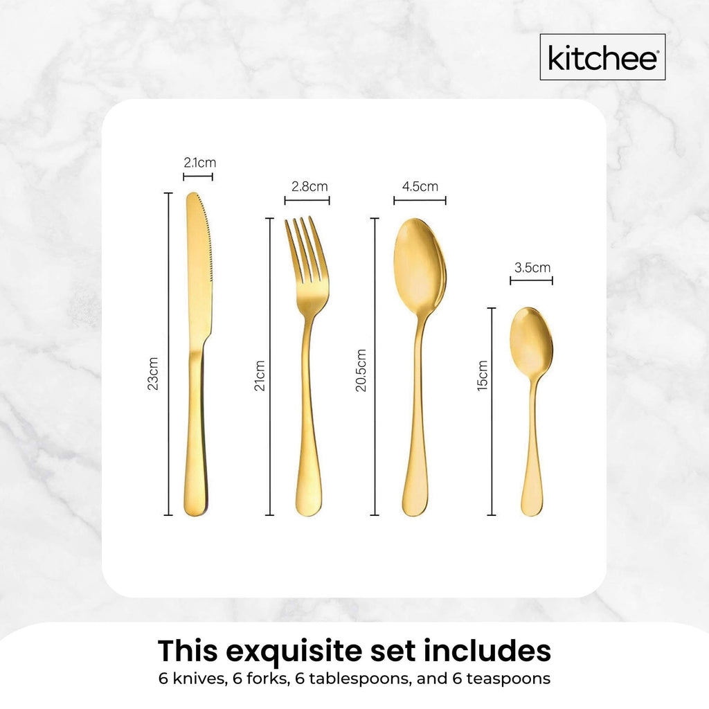 - Premium Quality: Crafted from high-quality stainless steel with a luxurious gold finish, this cutlery set is designed to last, providing both style and durability.