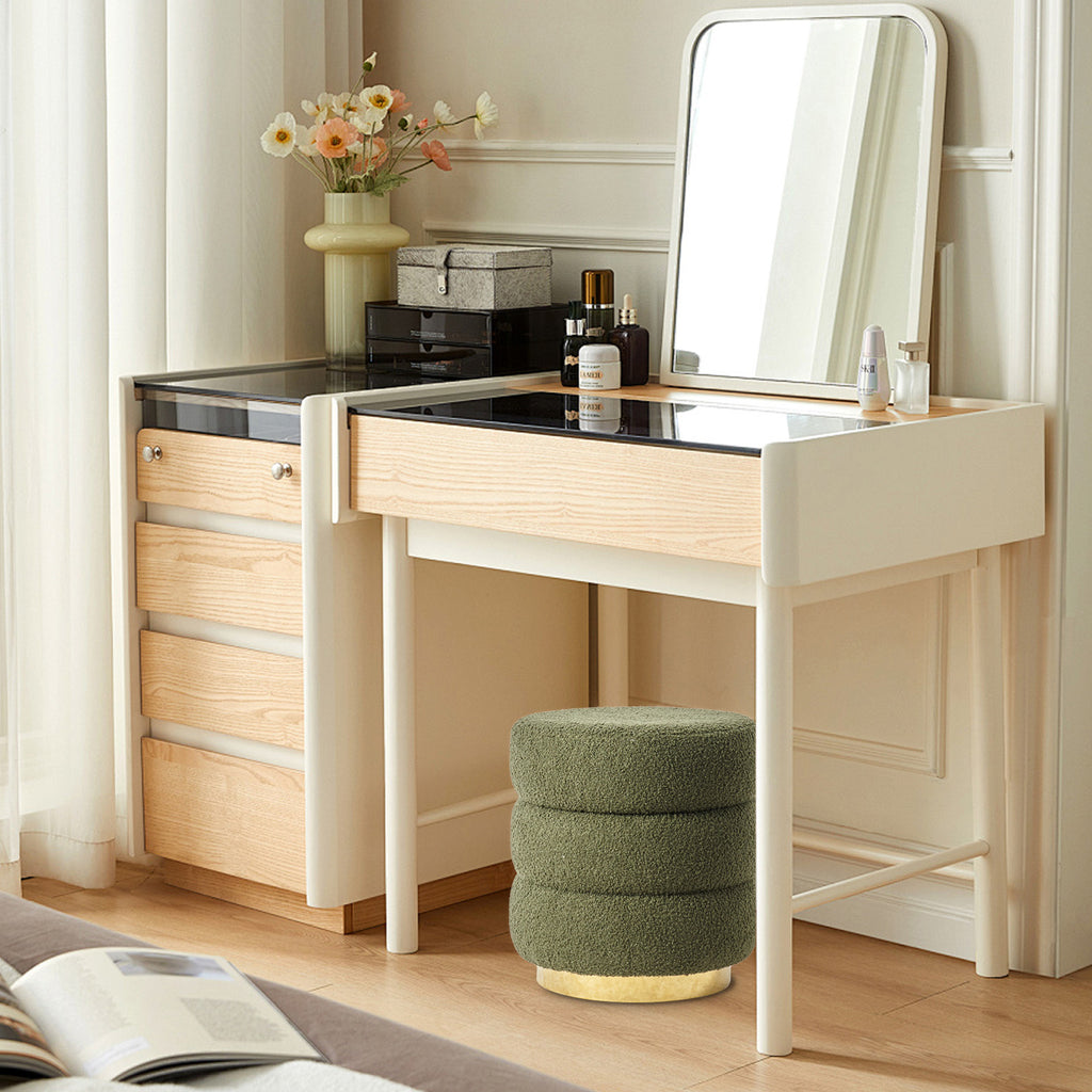 2X Round Stacked Ottoman Stool Teddy Fleece Fabric Foot Rest 38cm GREEN