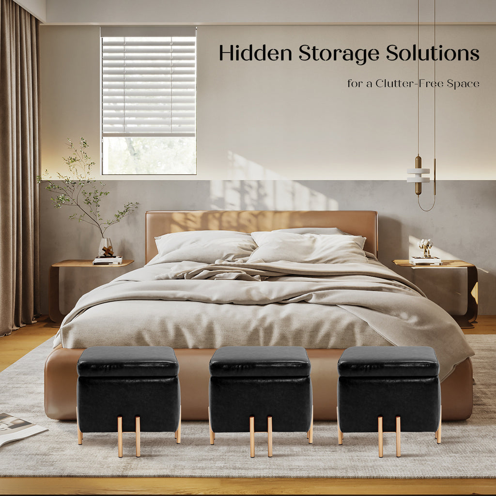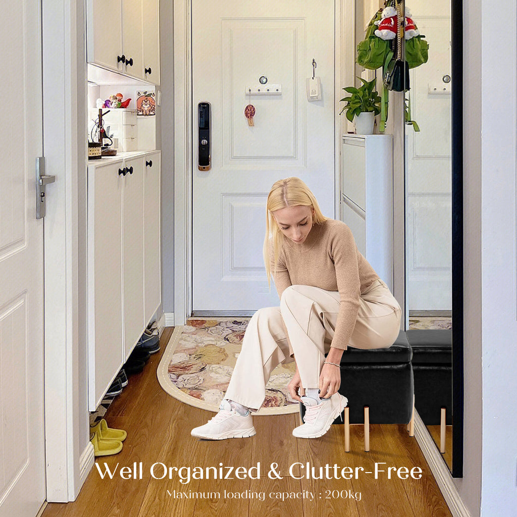La Bella 2 Set Storage Ottoman Cube Seat 45cm Chest Couch Tuffet Foot Stool PU Leather - Black