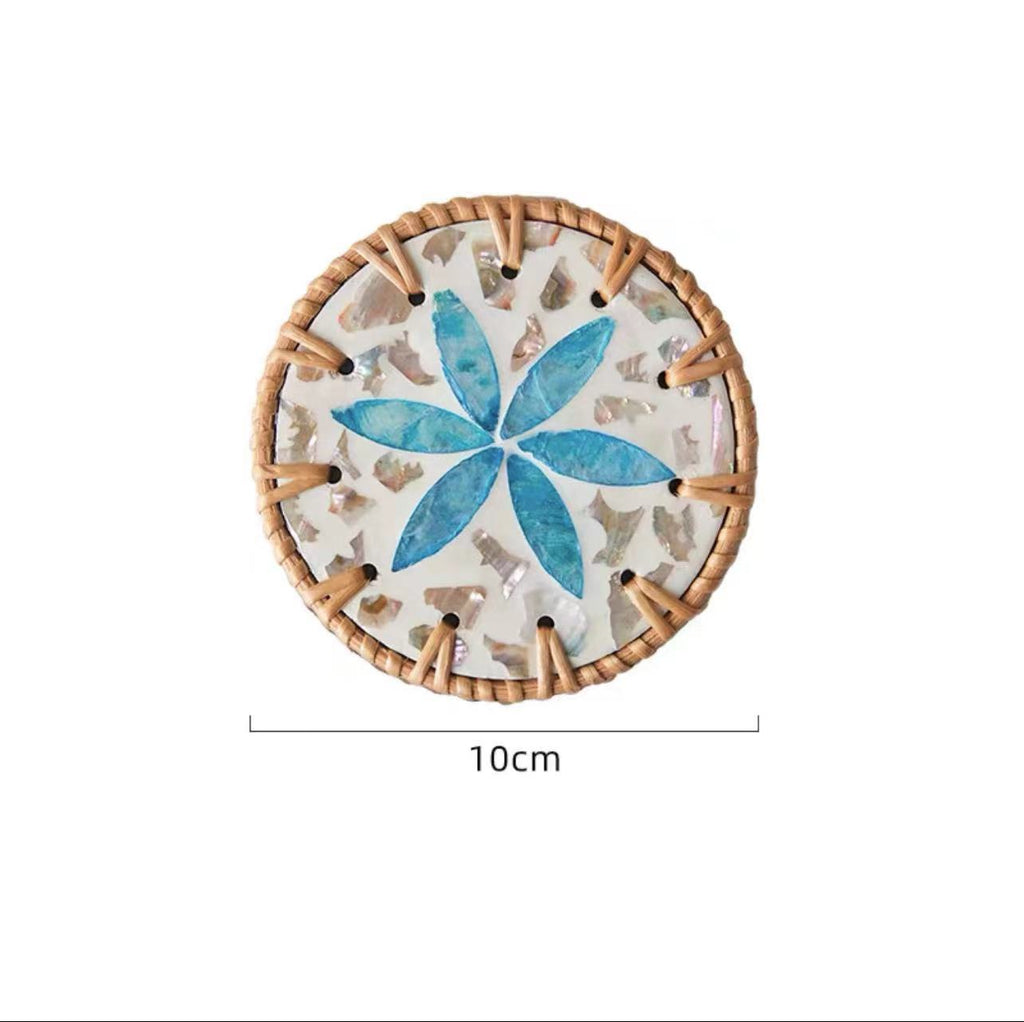 Handcrafted Rattan Coaster with Natural Shell Inlay - Decorative & Heat Insulating Drink Mat