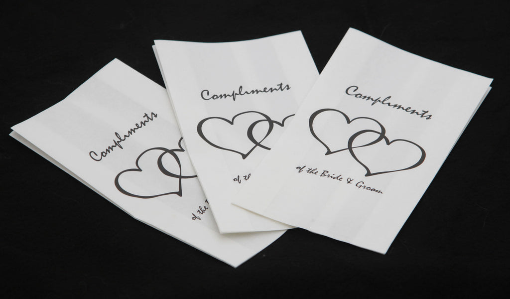 50 Pack Wedding Cake Bags Greaseproof Wax Paper Slice Take Home Favour Heart n Message
