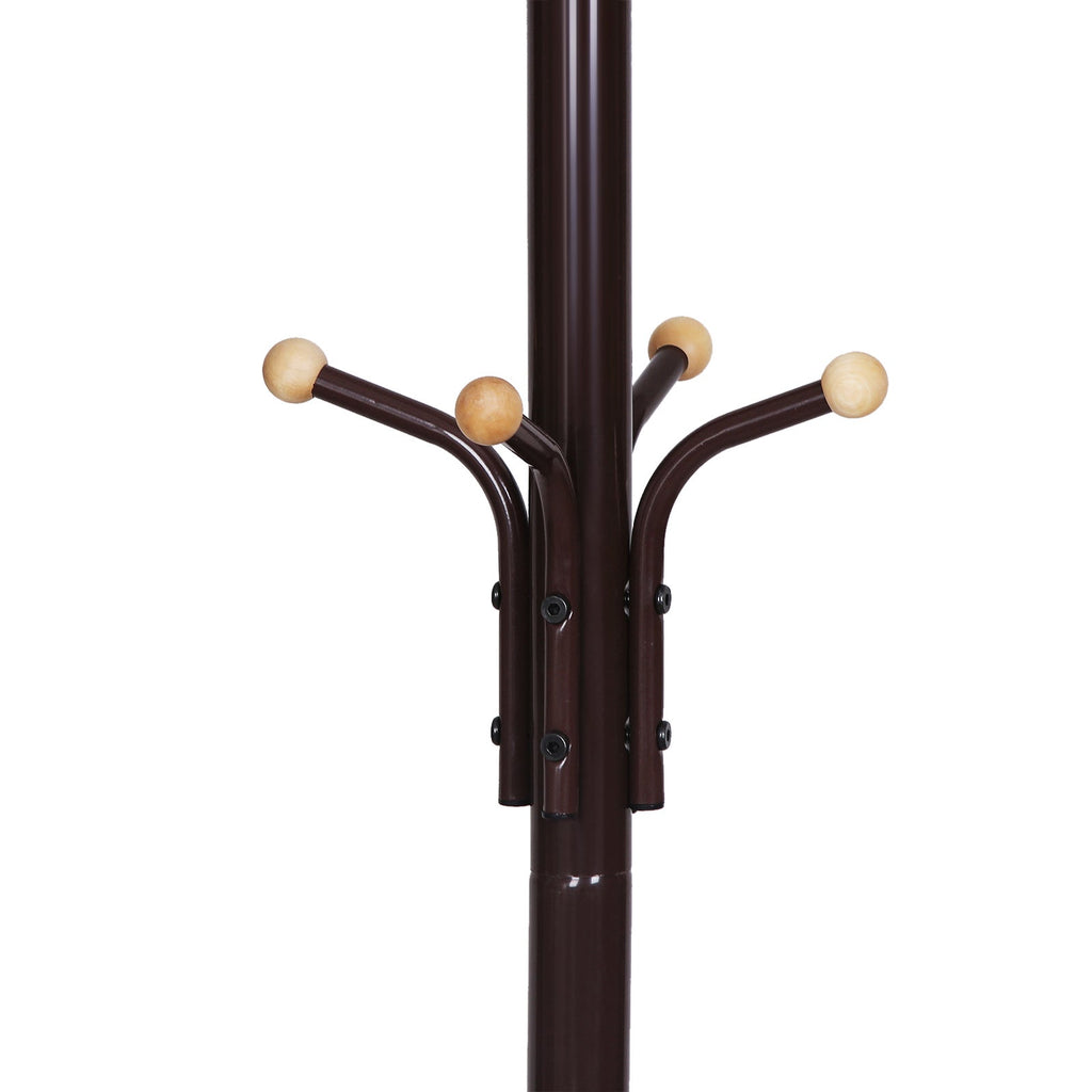 - This coat rack stand is a stunning addition to any home. Its brown surface creates a warm tone, while the wood accents on the hooks add a touch of character. Perfect for both style and practicality, it's sure to impress your guests.