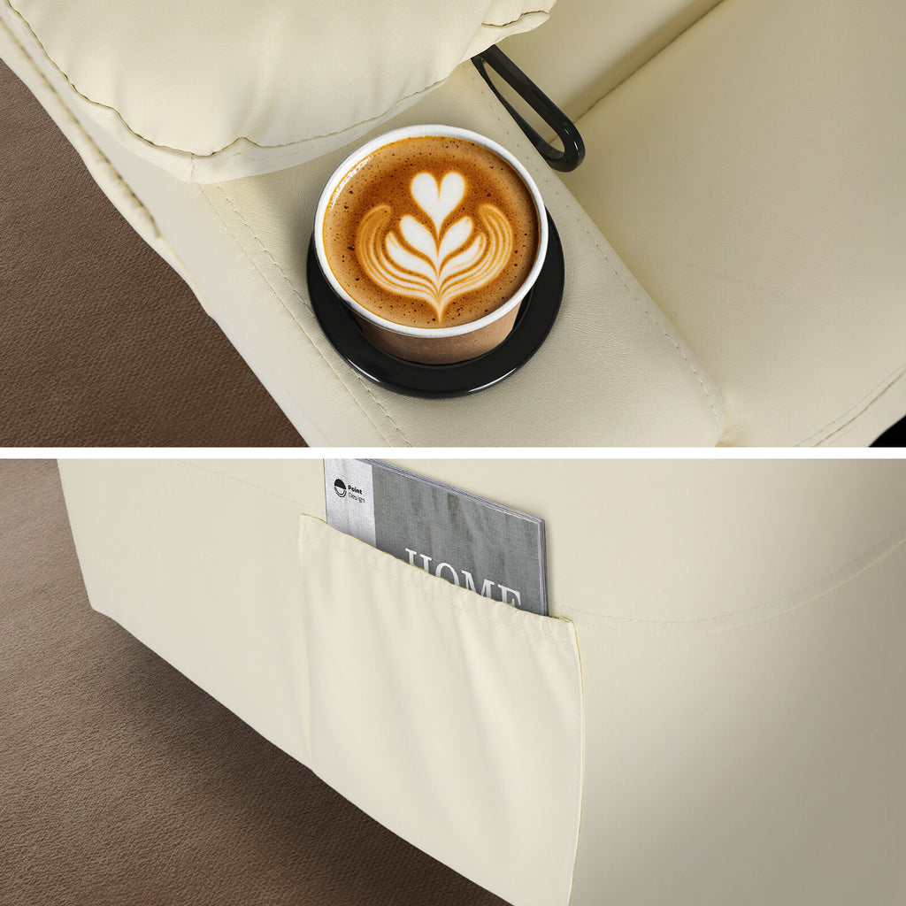 8-Point Electric Massage Recliner Chair - PU Leather Lounge Sofa Armchair ARLEEN BEIGE