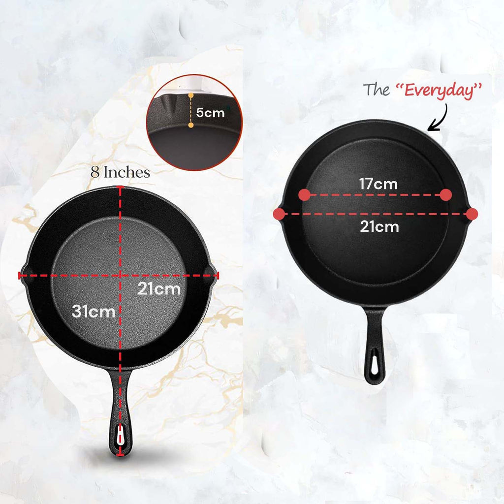 8inch 21cm Cast Iron Skillet Cookware Chef Quality Pre-Seasoned Pan Pans