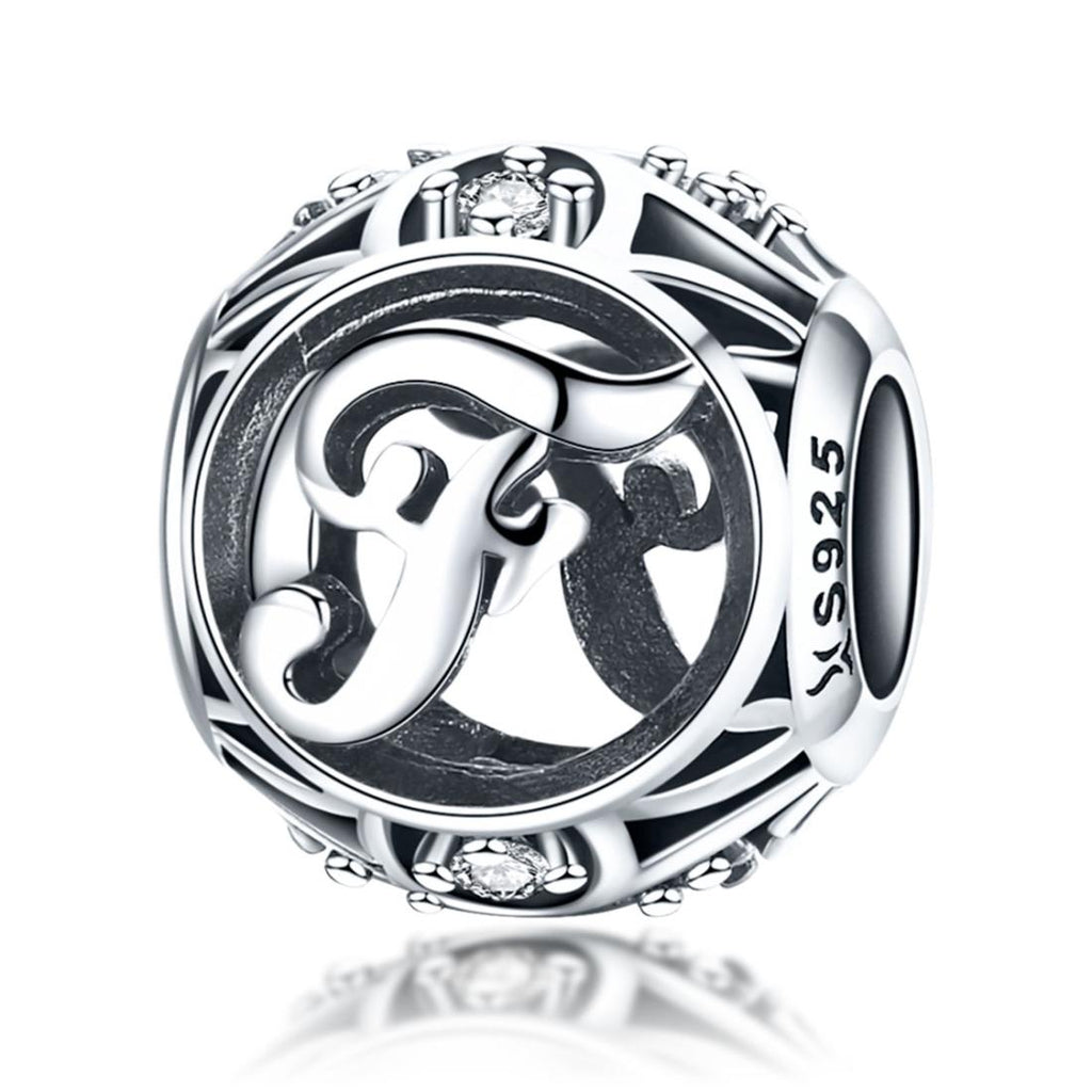 • 1 x 925 Sterling Silver 26 English Letter Beads For Diy Bracelets Necklaces Style - F