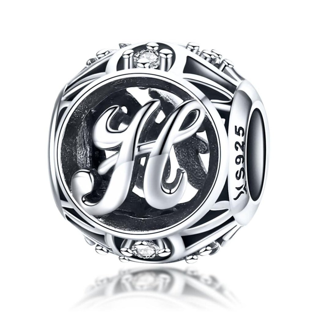 925 Sterling Silver 26 English Letter Beads For Diy Bracelets & Necklaces Style - H