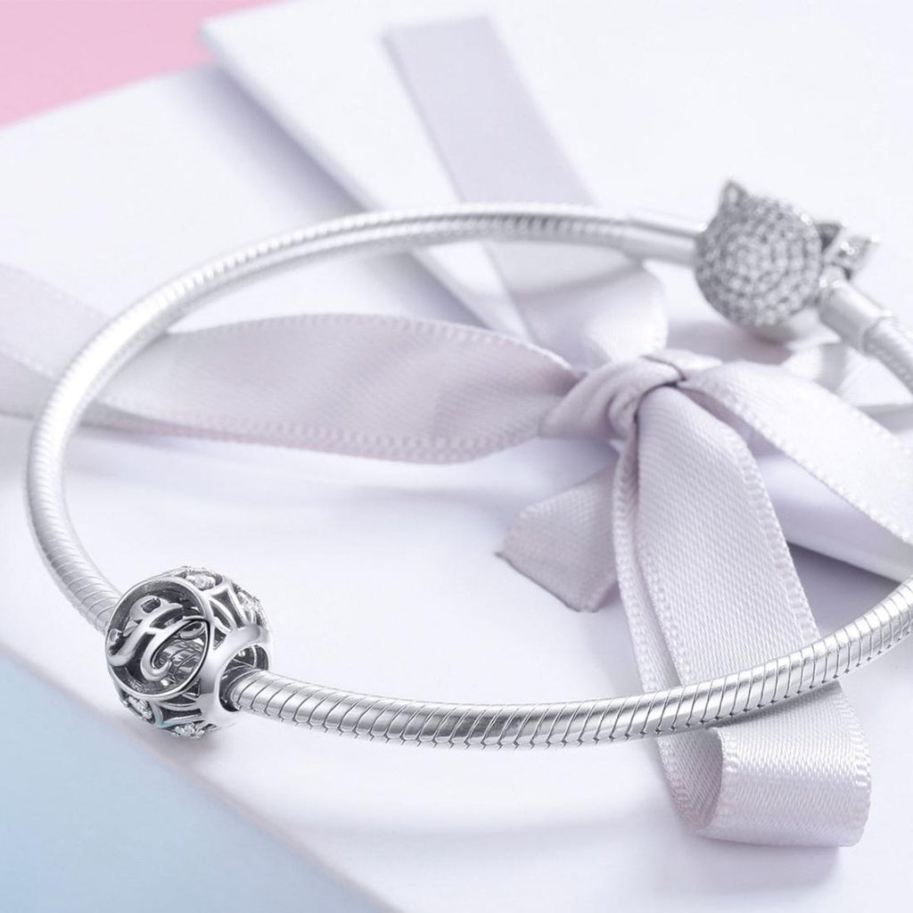 • 1 x 925 Sterling Silver 26 English Letter Beads For Diy Bracelets Necklaces Style - H