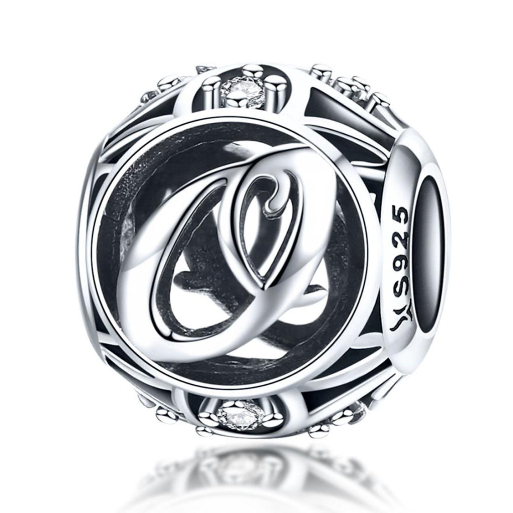 925 Sterling Silver 26 English Letter Beads For Diy Bracelets & Necklaces Style - O