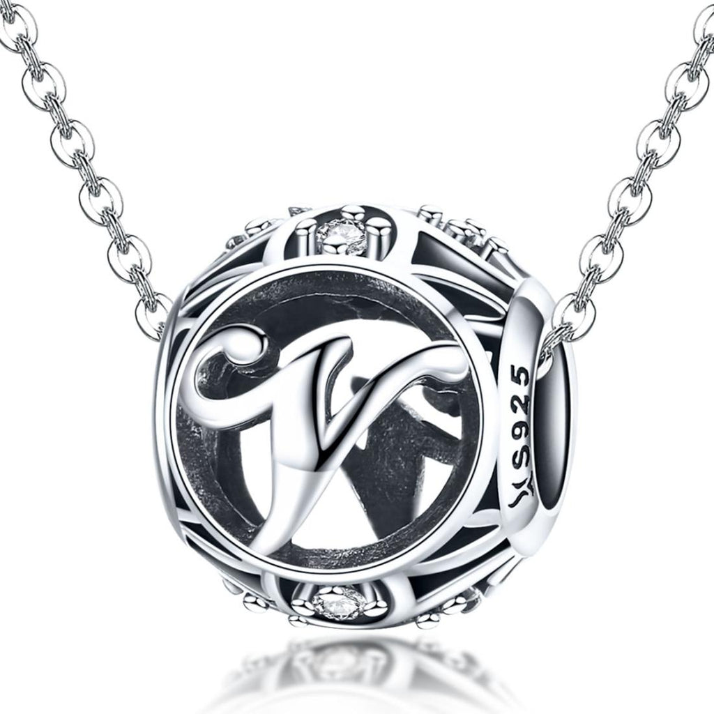 925 Sterling Silver 26 English Letter Beads For Diy Bracelets & Necklaces Style - V