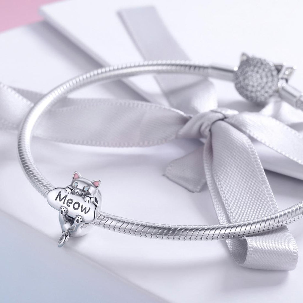 925 Sterling Silver Adorable Cat Charm For Diy Bracelets & Necklaces
