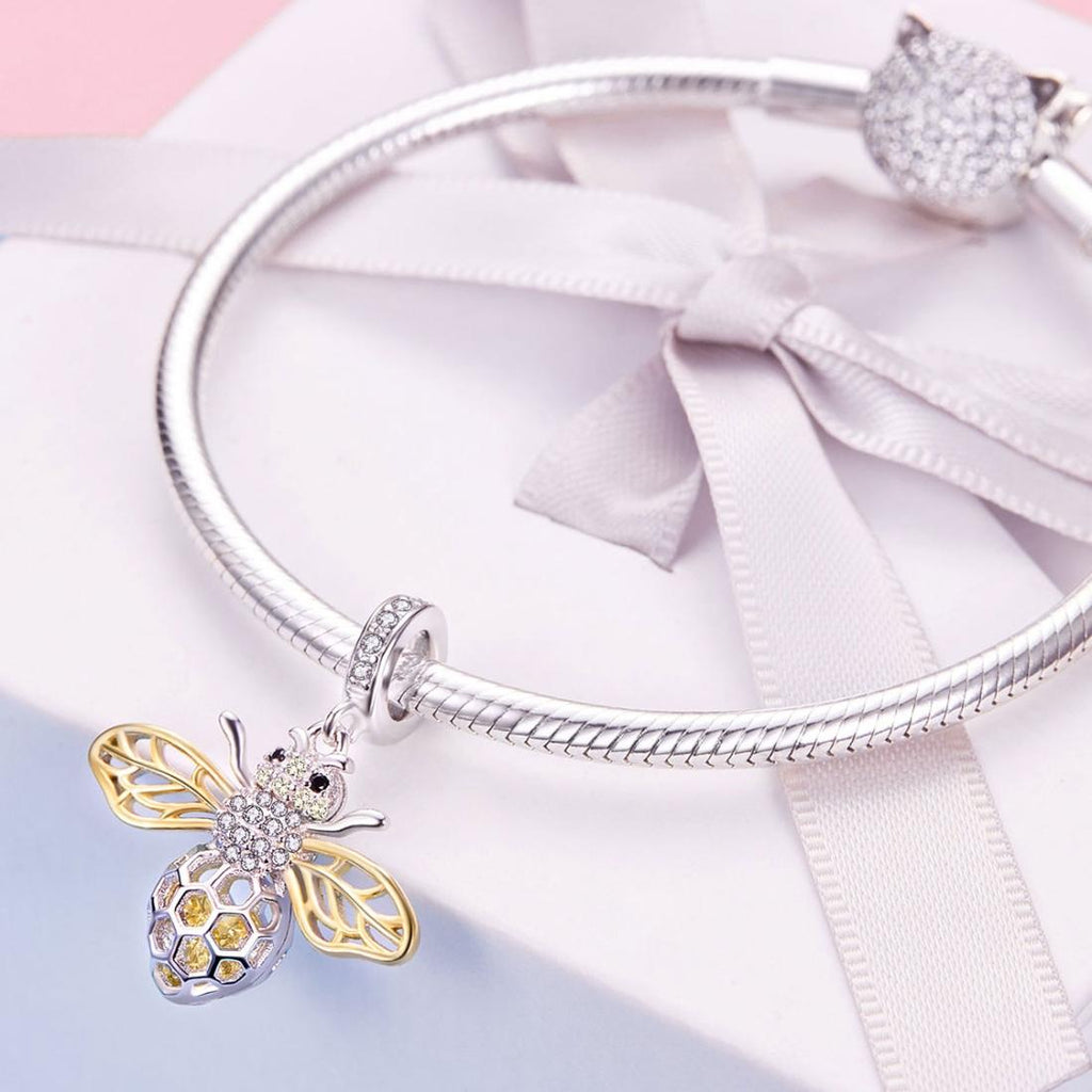 925 Sterling Silver Bee Zircon Pendant For Diy Necklace Style - Pendent