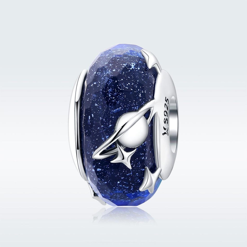 • 1 x 925 Sterling Silver Blue Glass Bead Pendant With Starry Sky Design