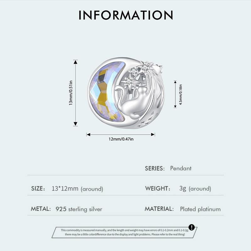 925 Sterling Silver Cat Moon Pendant For Diy Bracelets