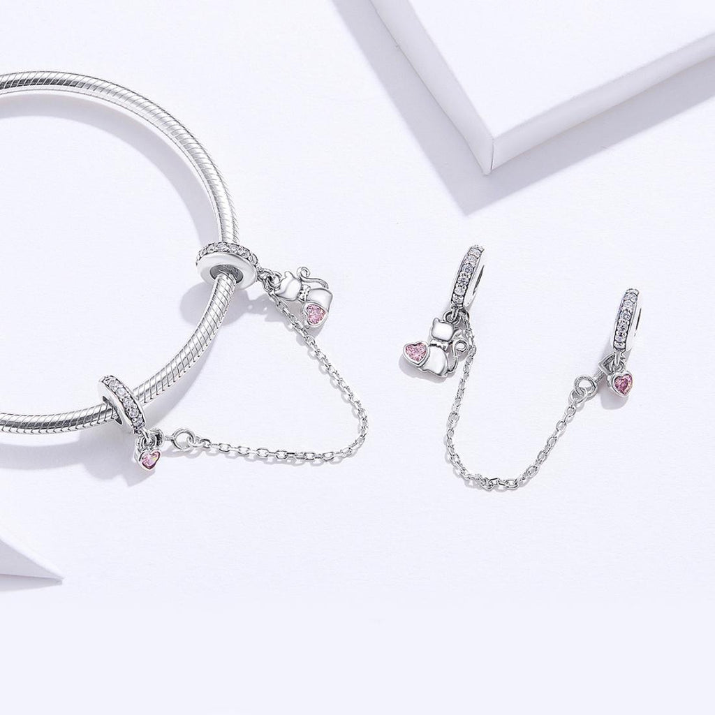 925 Sterling Silver Cat Safety Chain For Diy Bracelets