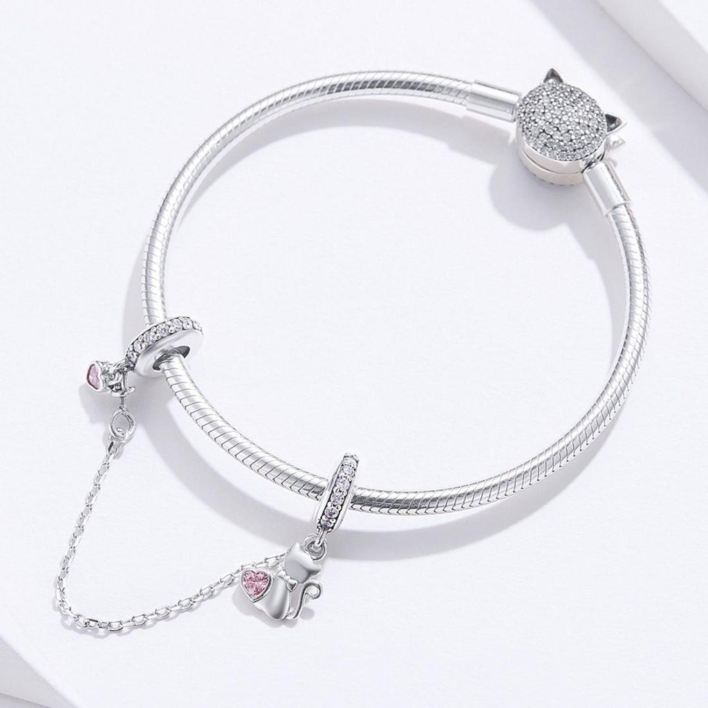 • 1 x 925 Sterling Silver Cat Safety Chain For Diy Bracelets