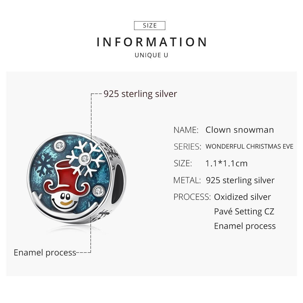 • 1 x 925 Sterling Silver Clown Snowman Beads For Diy Bracelets Necklaces