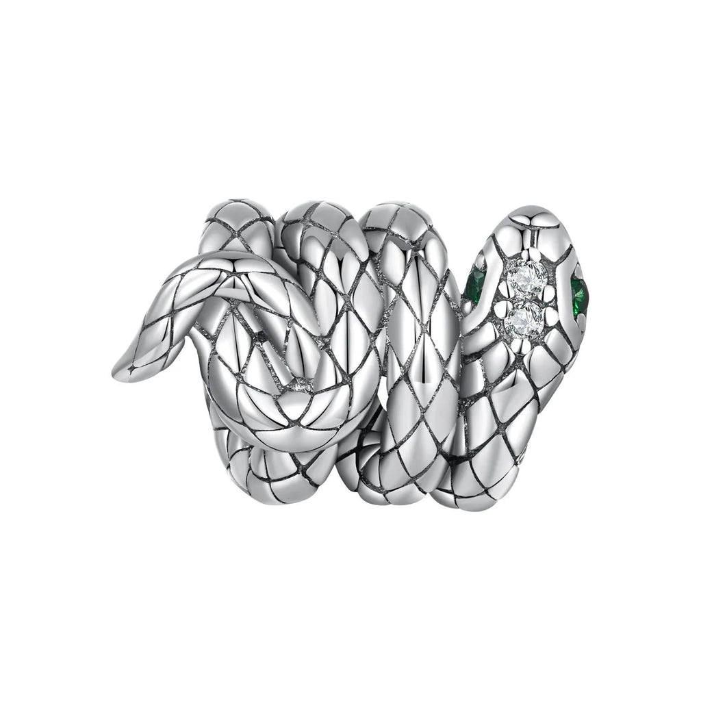 925 Sterling Silver Coiled Snake Pendant For Diy Bracelets