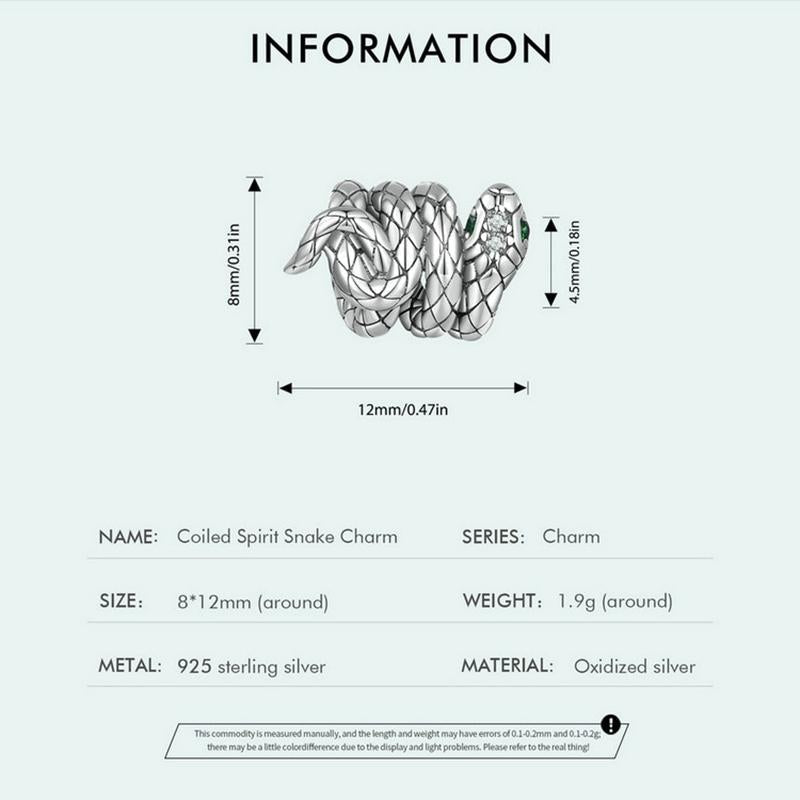 • 1 x 925 Sterling Silver Coiled Snake Pendant For Diy Bracelets