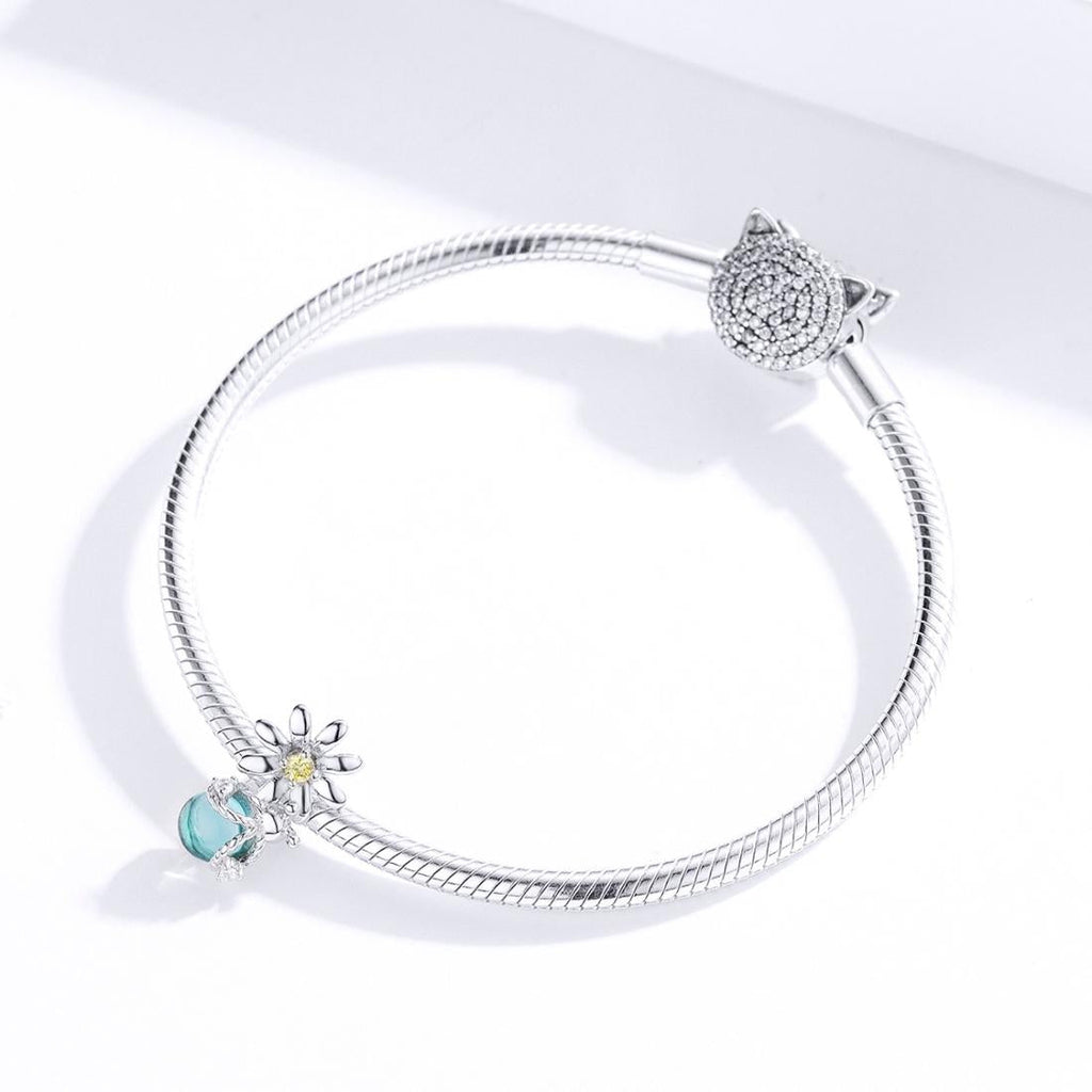 925 Sterling Silver Daisy & Firefly Crystal Bead Bracelet