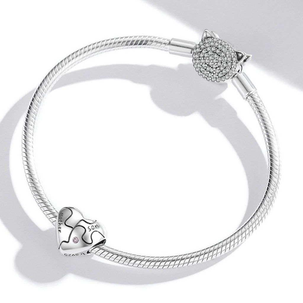 925 Sterling Silver Diy Heart Puzzle Beads For Bracelet / Necklace