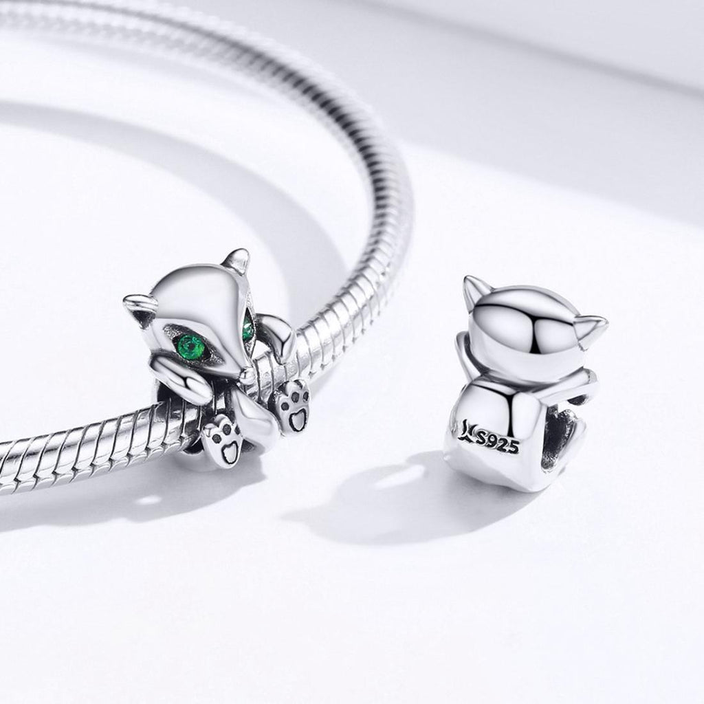 925 Sterling Silver Fox Charm Beads For Diy Bracelets