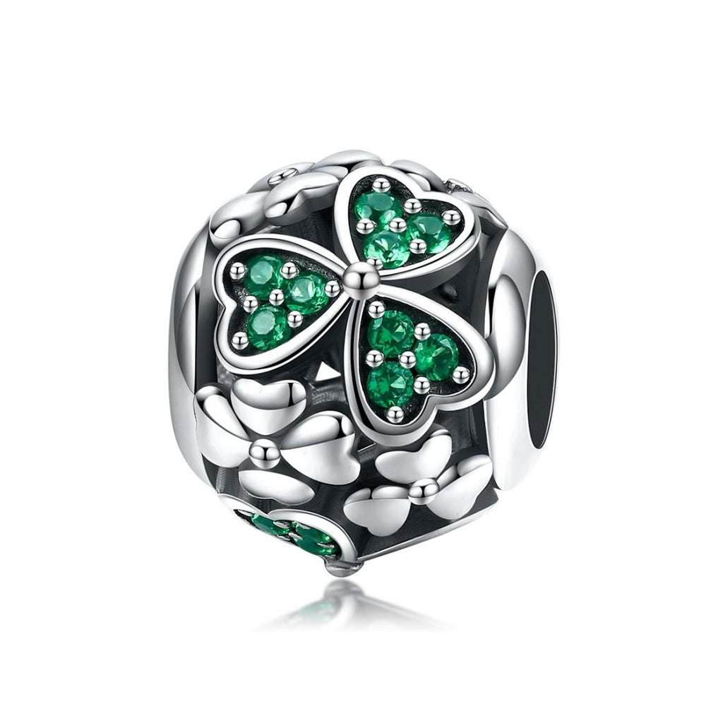 925 Sterling Silver Green Clover Bead For Diy Bracelets