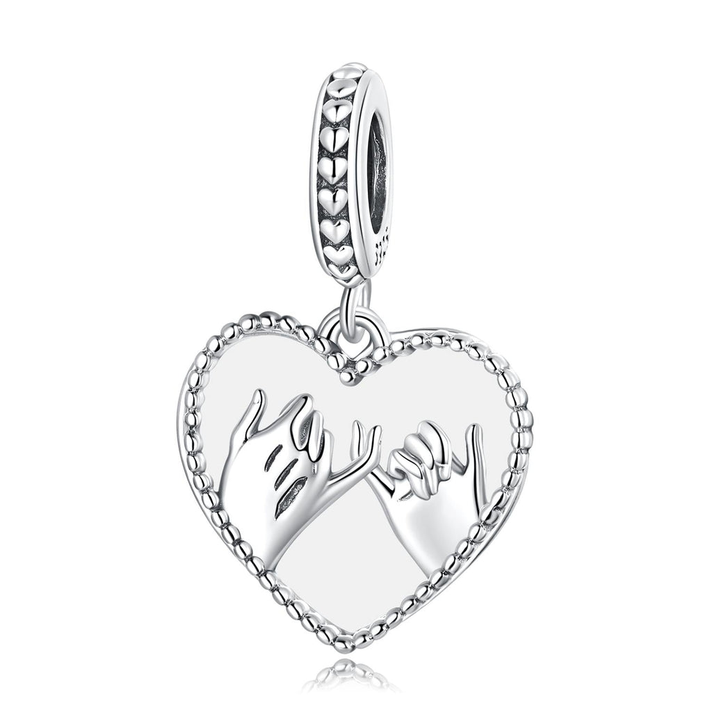 925 Sterling Silver Hand In Hand Heart Pendant For Diy Bracelets & Necklaces