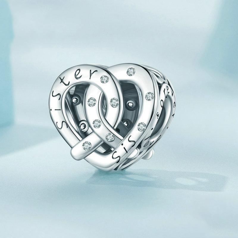 925 Sterling Silver Hollow Heart Sister Bracelet Beaded