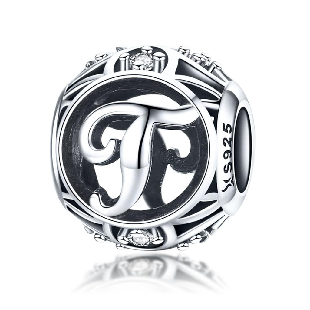 • 1 x 925 Sterling Silver Letter Beads For Diy Bracelets Necklaces Style - T