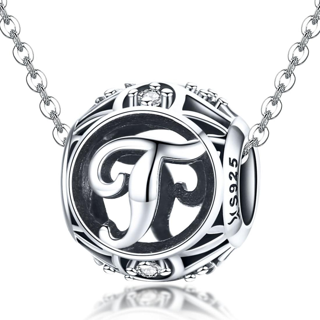 925 Sterling Silver Letter Beads For Diy Bracelets & Necklaces Style - T