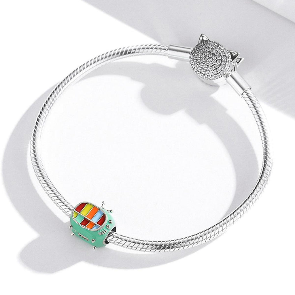 • 1 x 925 Sterling Silver Mini Color Tv Beads For Diy Bracelets Necklaces