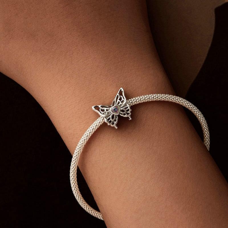 • 1 x 925 Sterling Silver Oxidized Butterfly Hollow Diy Beads