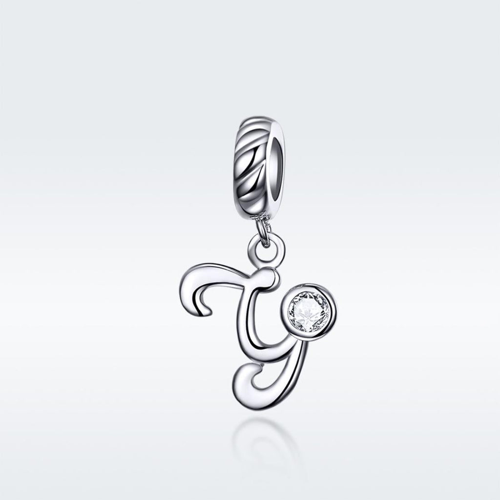 925 Sterling Silver Personalized Letter Pendant For Diy Bracelets And Necklaces Style - Y