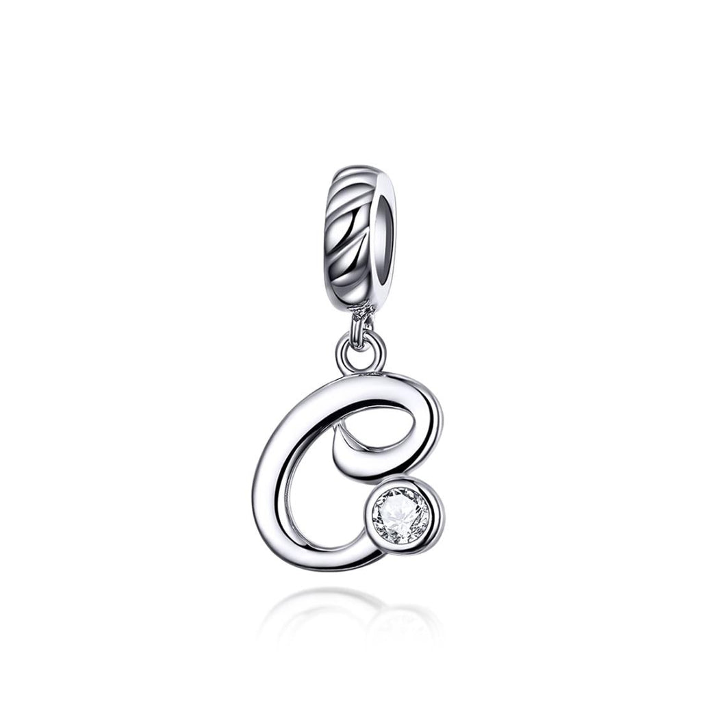 925 Sterling Silver Personalized Letter Pendant For Diy Bracelets & Necklaces Style - C