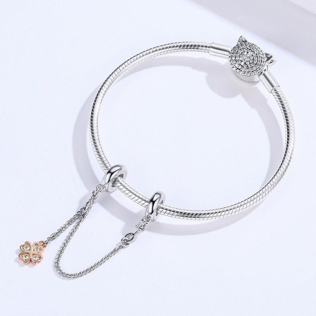 • 1 x 925 Sterling Silver Platinum Plated Clover Safety Chain For Diy Bracelets