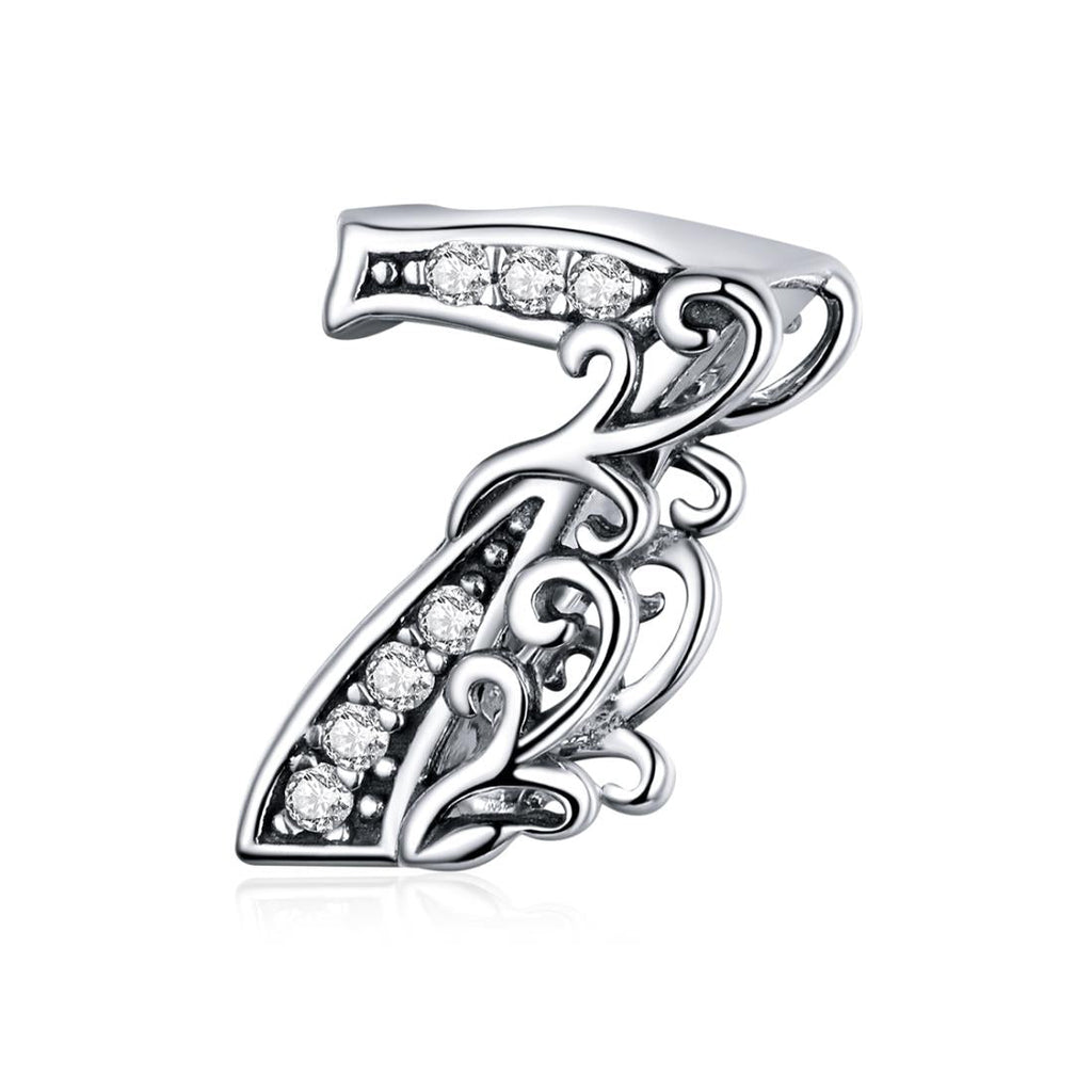 • 1 x 925 Sterling Silver Relief Number Series 0 9 Beads For Diy Bracelets And Necklaces Style - 7
