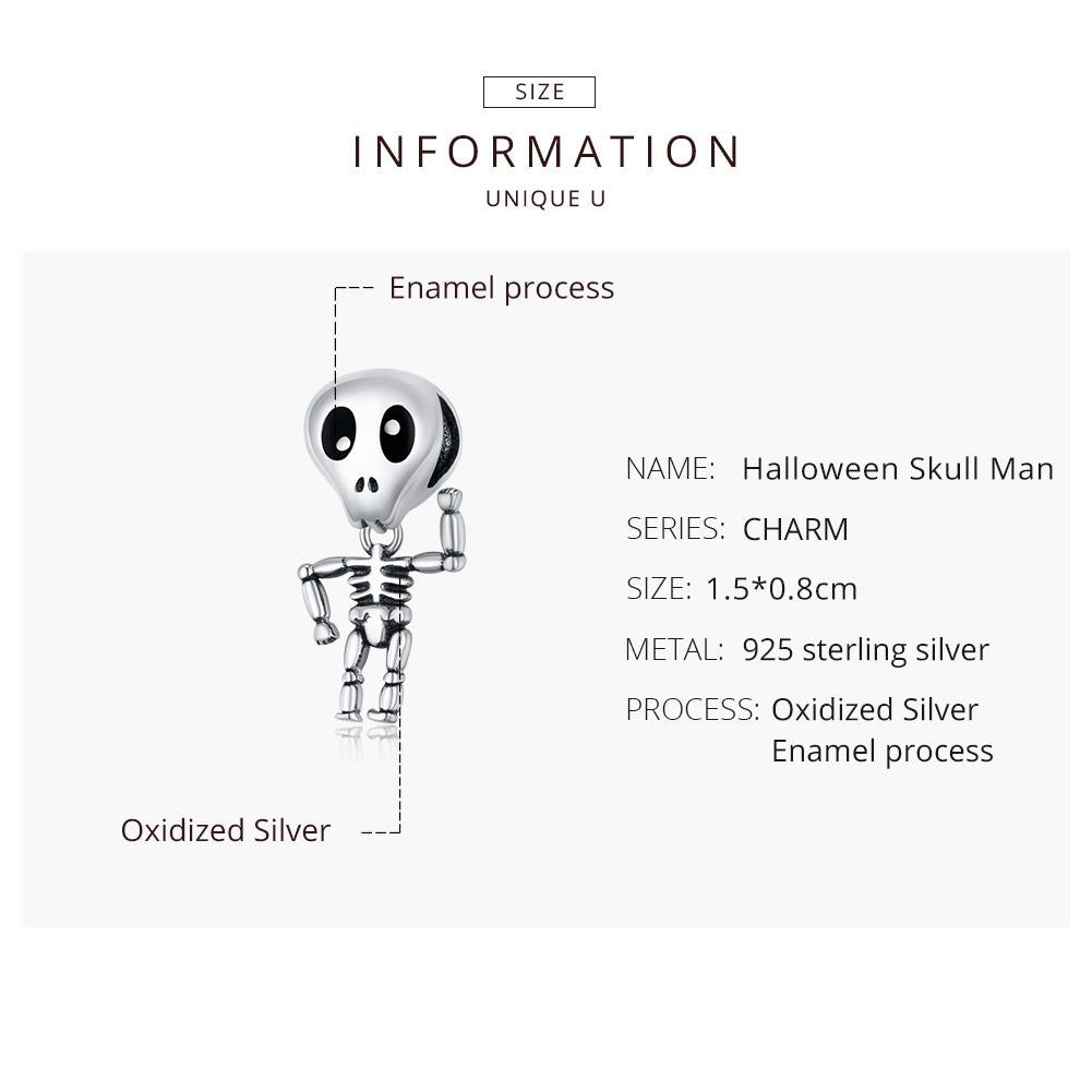 • 1 x 925 Sterling Silver Skull Beads For Diy Bracelets Necklaces