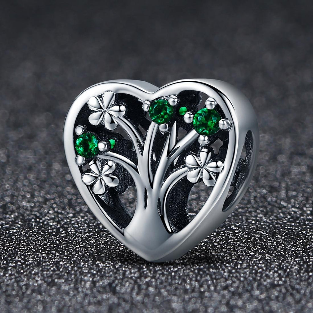 925 Sterling Silver Tree Of Life Heart Bracelet & Clear Beads