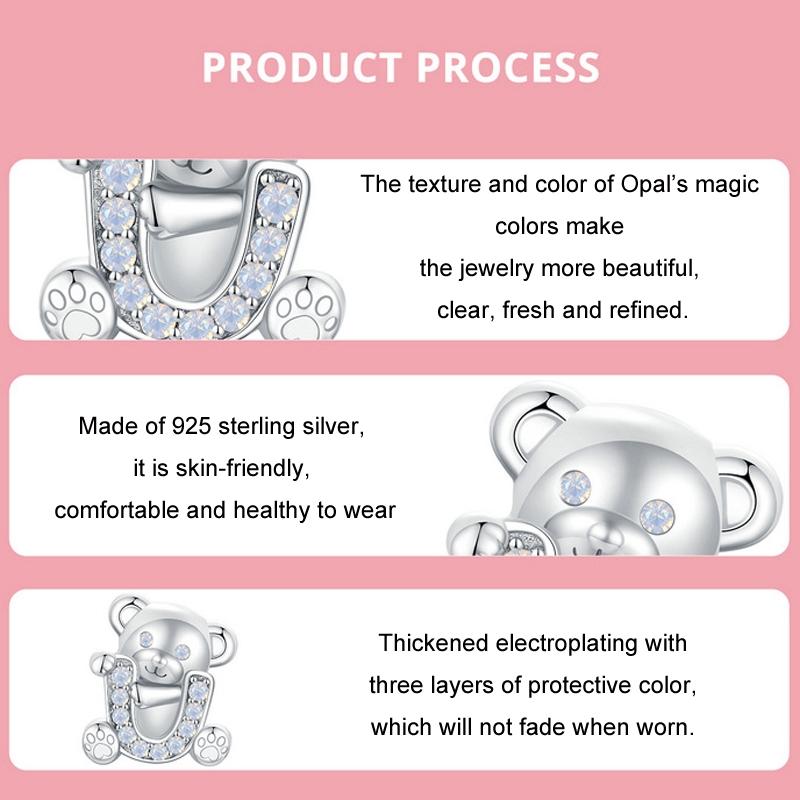 925 Sterling Silver Valentine'S Day Bear Beads