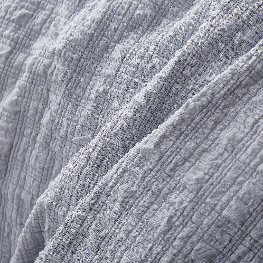 The Augusta Grey Ruched Quilt Cover Set by Accessorize is made from a Super Soft Double Layer Gauze fabric that mixes the softness of polyester with the crinkled look of linen allowing you to change up your room without the expense of buying a new cover. The Polyester Gauze is composed of two thin layers of cotton woven together by invisible stitches at regular intervals giving it a light airy feel. With its light breathable properties, this polyester gauze offers supreme comfort.