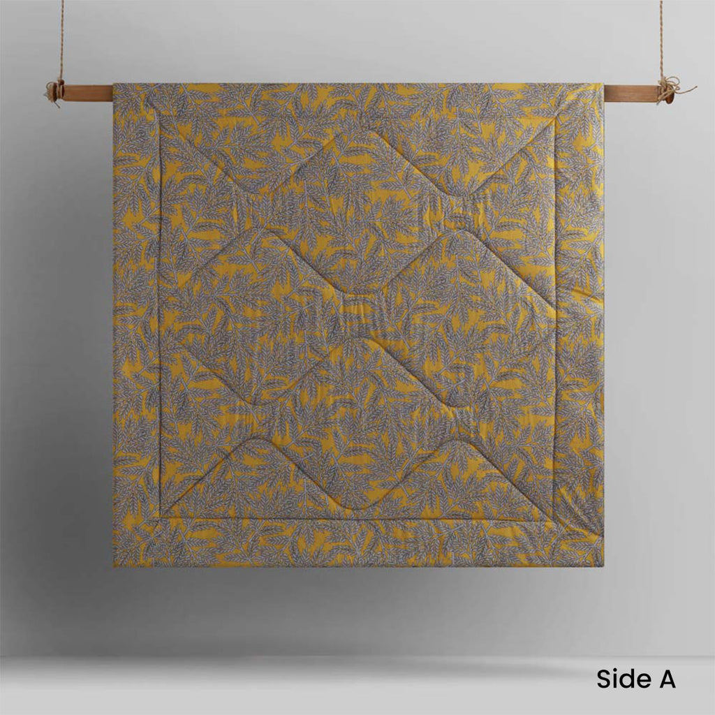 You will thank yourself a hundred times over for buying this great digital printed comforter set in mustard, grey, brown, and silver colour tones. Refusing to compromise on design, comfort, and especially affordability, this Clove Washed Cotton Printed Reversible Comforter Set by Accessorize is certain to provide you with all-year-round comfort and warmth. Made from 100% Cotton cover with polyester filling.