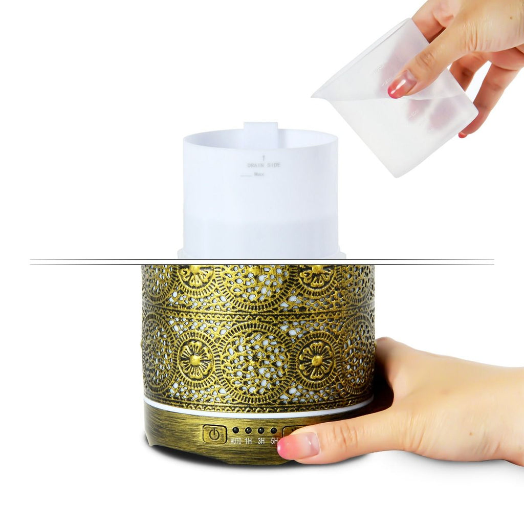 Package contents: Aroma diffuser, user manual, measuring cup and DC power adapter
