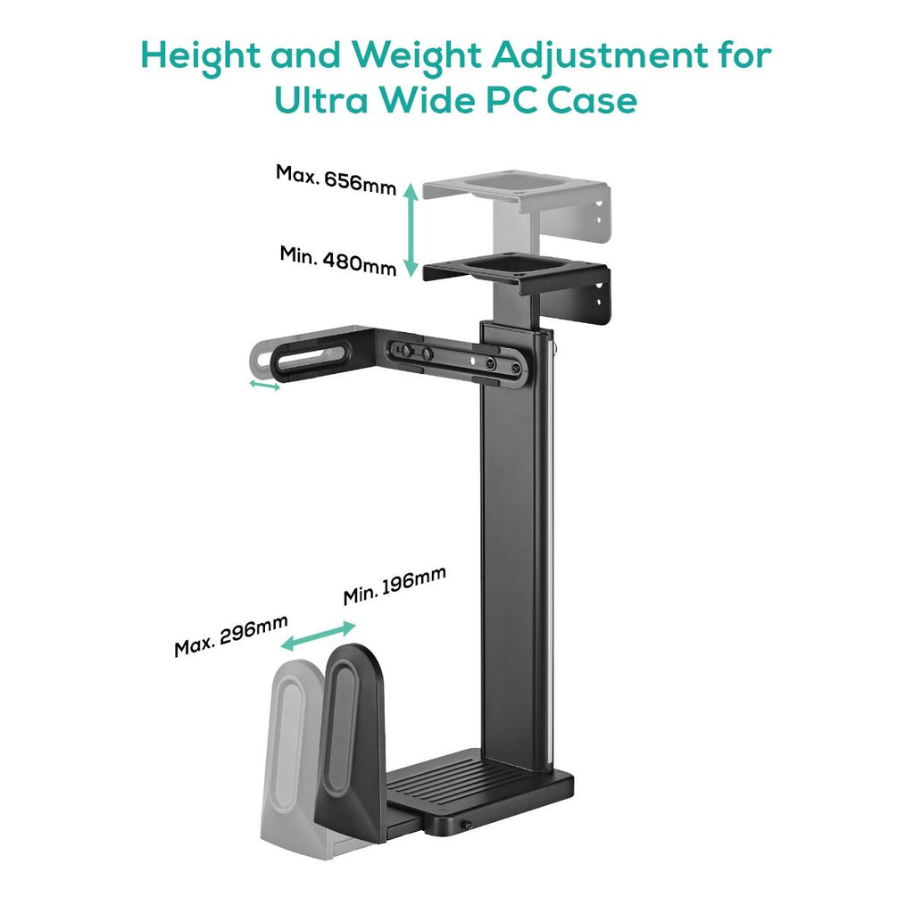 • Step-less Height Adjustment up to 65cm: The step-less height adjustment feature allows you to adjust the height of the holder to perfectly accommodate tall PCs. This ensures that your PC case is positioned at the ideal height for optimal performance and comfort.