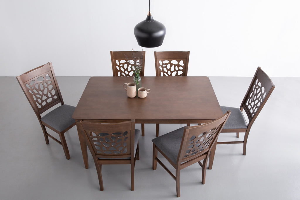 ALLEGRO Dining Table + 6x ASBEL Dining Chair - 7 Piece Dining Set - Cocoa